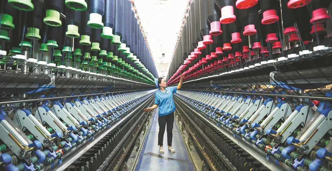 ▲A textile company employee works at a factory in Huai'an, Jiangsu province, on Monday. China's purchasing managers index reached 50.1 in January, passing the 50-point mark that separates growth from contraction. ZHAO QIRUI/FOR CHINA DAILY