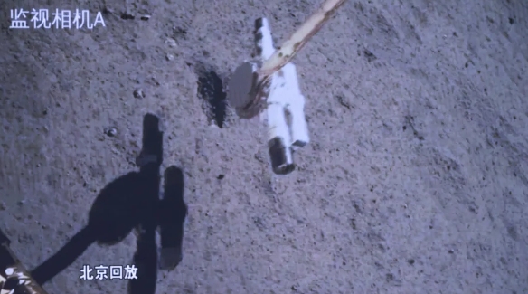 ▲An image of the sampling operation, taken by a camera onboard the Chang'e 6 lander, is beamed back to Earth. JIN LIWANG/XINHUA/CHINA DAILY