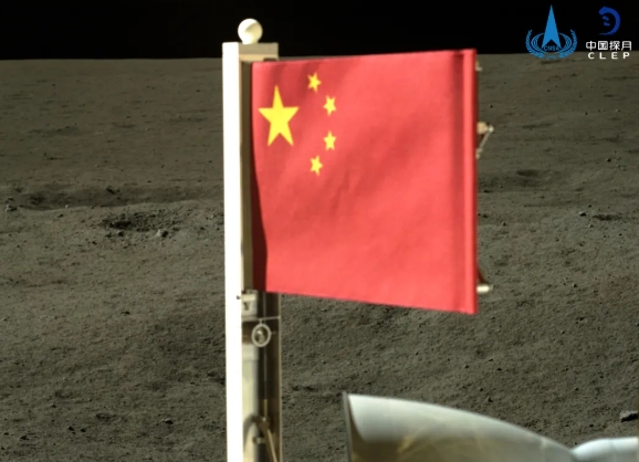 ▲An image provided by the national space administration shows China's national flag unfurled on the Chang'e 6 lander, becoming the first flag of any country to fly on the lunar far side. JIN LIWANG/XINHUA/CHINA DAILY